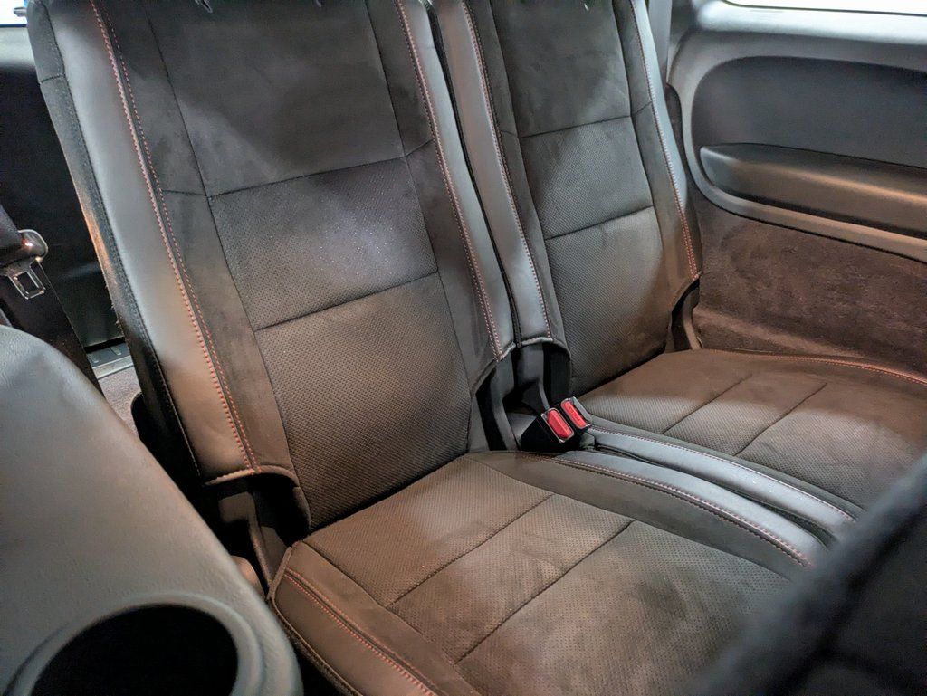 Inside, the cabin is designed for comfort and functionality across all three rows. Premium cloth bucket seats with driver and passenger adjustable lumbar support, heated front and rear seats, second row captains chairs, and a third row seat make this SUV ideal for families and road trips. A heated leather wrapped steering wheel, power driver seat with memory, and thoughtful storage solutions elevate the driving experience. Rear air conditioning and multiple power outlets ensure comfort for all passengers.